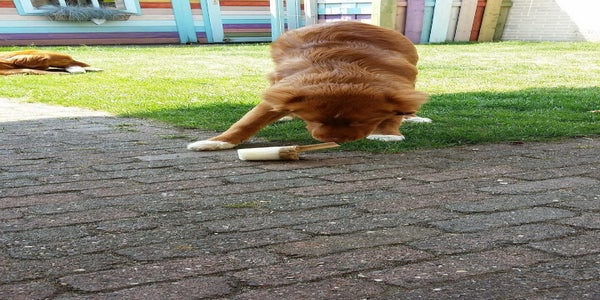 Spelen met een stok is gevaarlijk voor je hond, waarschuwt dierenarts.